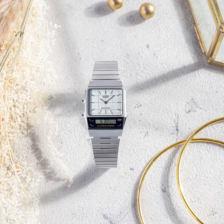ساعت مچی وینتیج کاسیو مدل AQ-800E-7ADF سبک وینتج خود را با بازآفرینی مدرن طراحی AQ-450 از دهه ۱۹۸۰ بهروزرسانی کنید. این ساعت جدید ترکیبی زیبا از حس نوستالژیک و مد روز است.