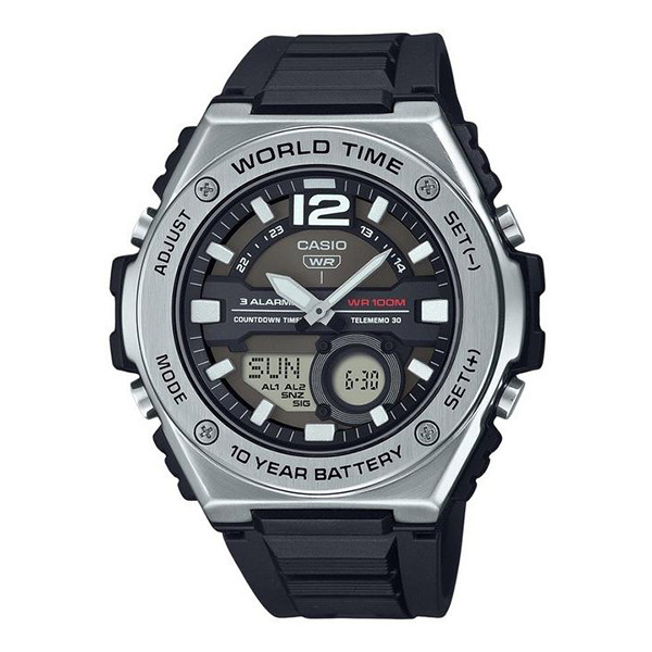 ساعت مچی اسپرت کاسیو مدل CASIO MWQ-100-1AVDF ترکیب طراحی استیل با جذابیت نور خورشید در ساعتهای آنالوگ-دیجیتال، راحتی و کاربری منحصر به فردی را ارائه میدهد.