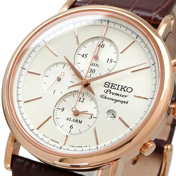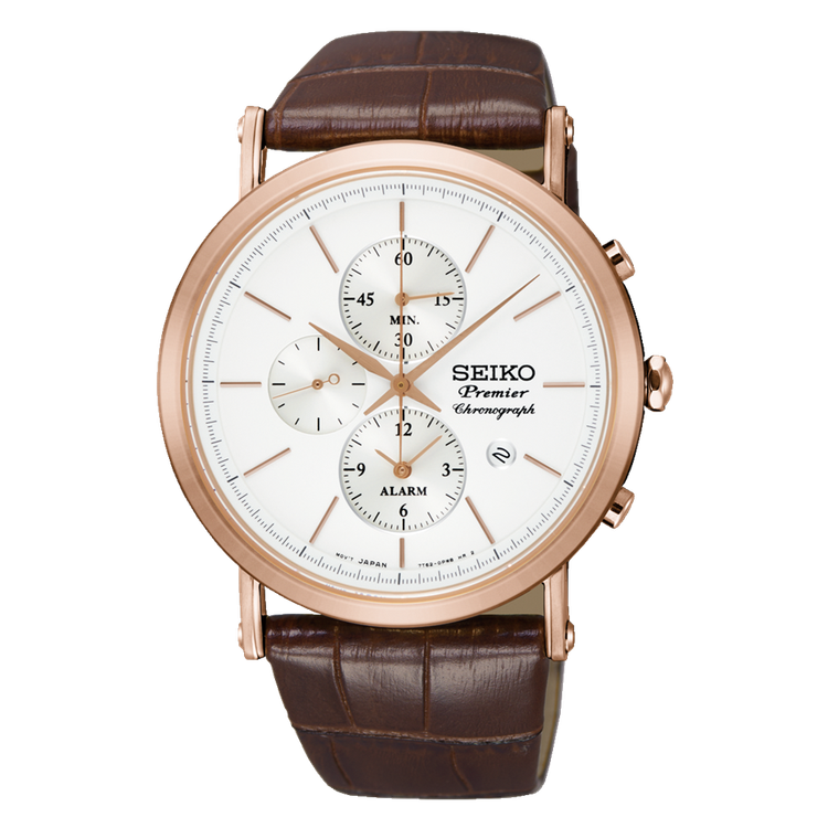 Seiko Premier Rose Gold Tone Men's Chronograph Watch SNAF82P1