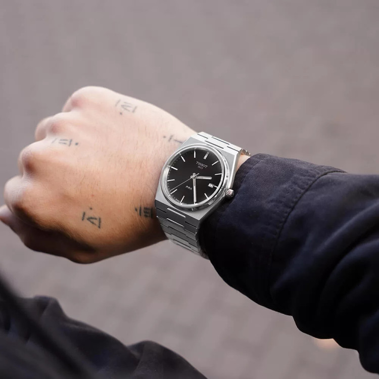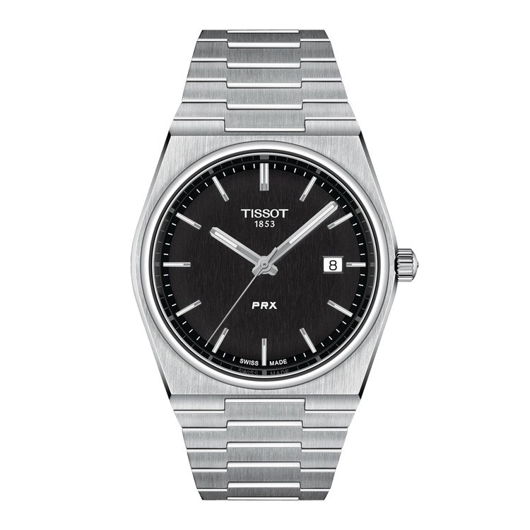 ساعت مچی مردانه Tissot PRX مدل T137.410.11.051.00 یکی از پرطرفدارترین مدلهای برند تیسوت است که با الهام از طراحیهای دهه ۷۰ میلادی و ترکیب آن با فناوری روز، محصولی چشمنواز و ماندگار را ارائه میدهد. قاب استیل با طراحی تونئو و بند یکپارچه از فولاد ضدزنگ، ظاهری مدرن و در عین حال کلاسیک به ساعت بخشیدهاند. صفحه مشکی با پرداخت برسخورده عمودی، جلوهای مینیمال و جذاب دارد و عقربهها و نشانگرهای پوشیدهشده با ماده شبتاب Super-LumiNova، خوانایی عالی را در هر شرایط نوری تضمین میکنند.