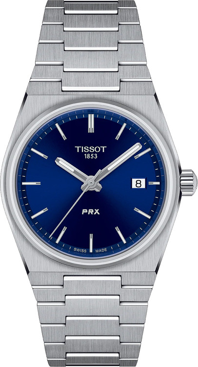 ساعت مچی زنانه Tissot PRX T137.210.11.041.00 با طراحی الهامگرفته از دهه ۷۰ میلادی، ترکیبی از زیبایی کلاسیک و فناوری مدرن را ارائه میدهد. این مدل با صفحه آبی جذاب و بند استیل یکپارچه، انتخابی ایدهآل برای بانوانی است که به دنبال ساعتی شیک و قابل اعتماد برای استفاده روزمره و رسمی هستند