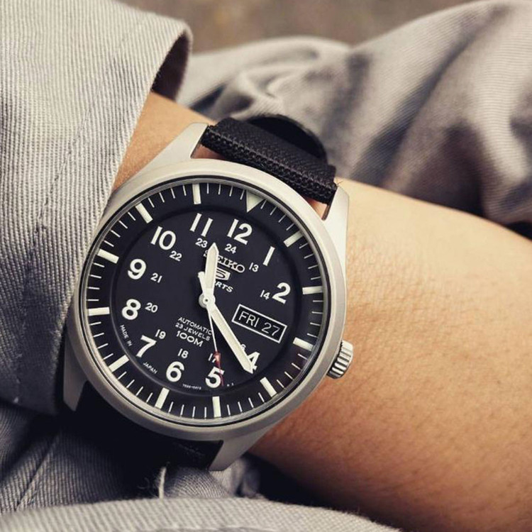ساعت مچی سیکو مدل SNZG15J1 یکی از پرفروشترین مدلهای سری Seiko 5 است که با طراحی نظامی، کیفیت ساخت قابلاعتماد و مکانیزم خودکار، در میان علاقهمندان به ساعتهای کلاسیک محبوبیت بالایی دارد. این ساعت مجهز به موتور اتوماتیک کالیبر 7S36 با ۲۳ سنگ جواهر است که بدون نیاز به باتری کار کرده و حدود ۴۰ ساعت ذخیره انرژی دارد. بدنه استیل ضدزنگ با پرداخت مات و بند برزنتی مشکی، ظاهر مقاوم و کاربردی به آن میدهد که برای استفاده روزمره، کوهنوردی و فعالیتهای شهری بسیار مناسب است.