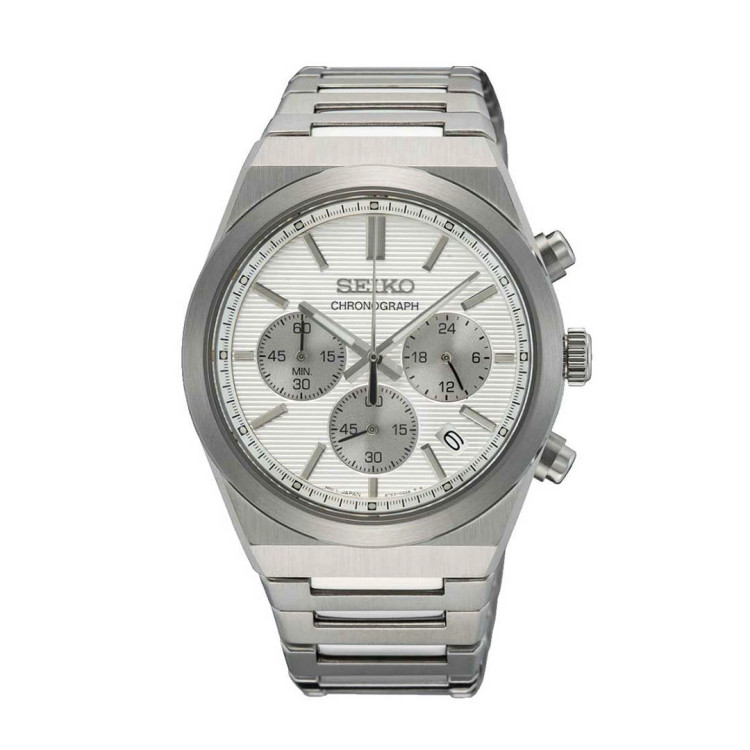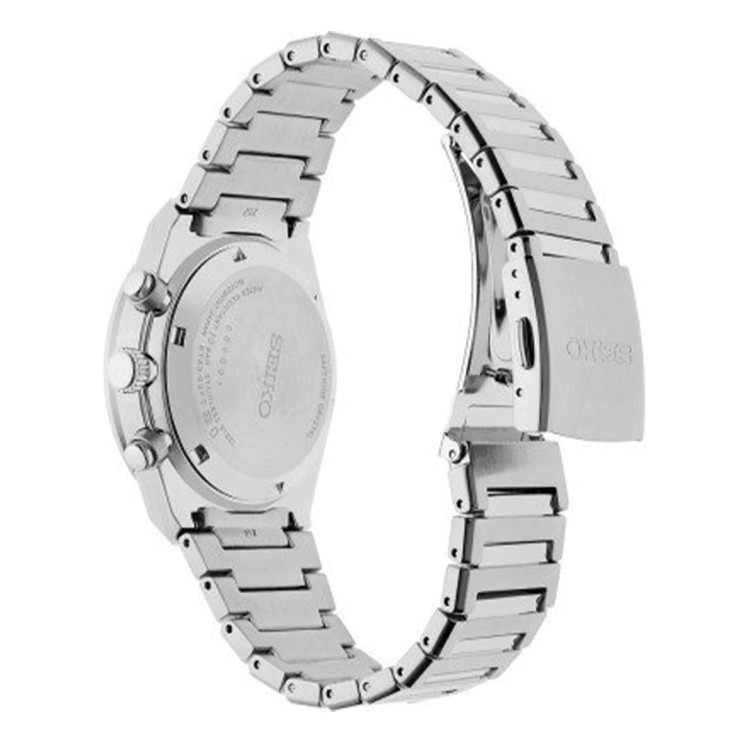 ساعت Seiko SSB451P1 یکی از کرنوگرافهای مدرن و خوشساخت برند سِیکو است که با ظاهری کلاسیک–اسپرت طراحی شده. قاب و بند از جنس استیل ضدزنگ ساخته شدهاند که علاوه بر مقاومت بالا، ظاهری براق و شیک ایجاد میکنند. قطر قاب ۴۰ میلیمتر و ضخامت حدود ۱۱.۵ میلیمتر است؛ ابعادی متعادل که باعث میشود ساعت روی مچ دست نه خیلی بزرگ و نه کوچک جلوه کند. وزن ۱۵۲ گرمی آن حس کیفیت و استحکام را القا میکند و در عین حال استفاده طولانیمدت را خستهکننده نمیسازد.