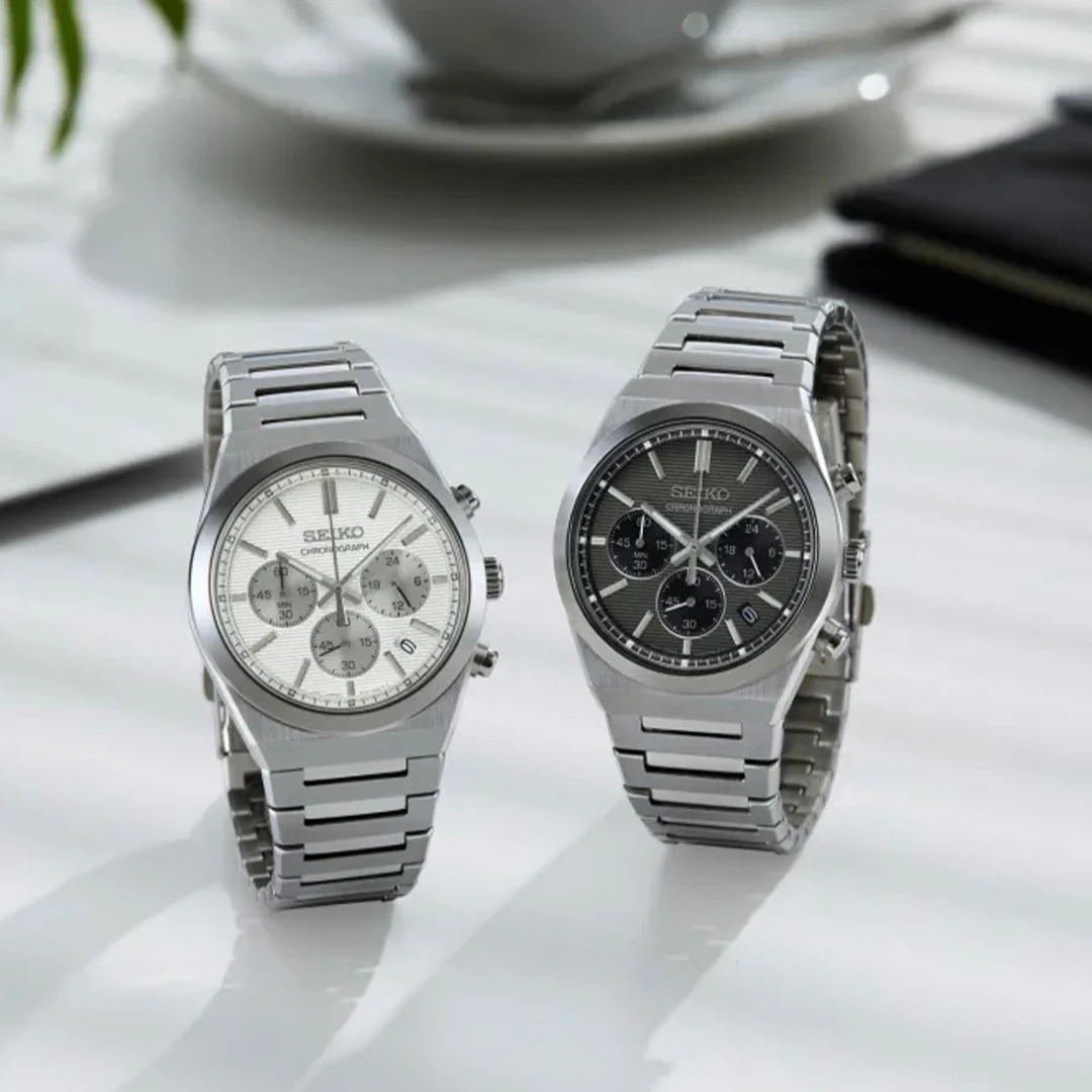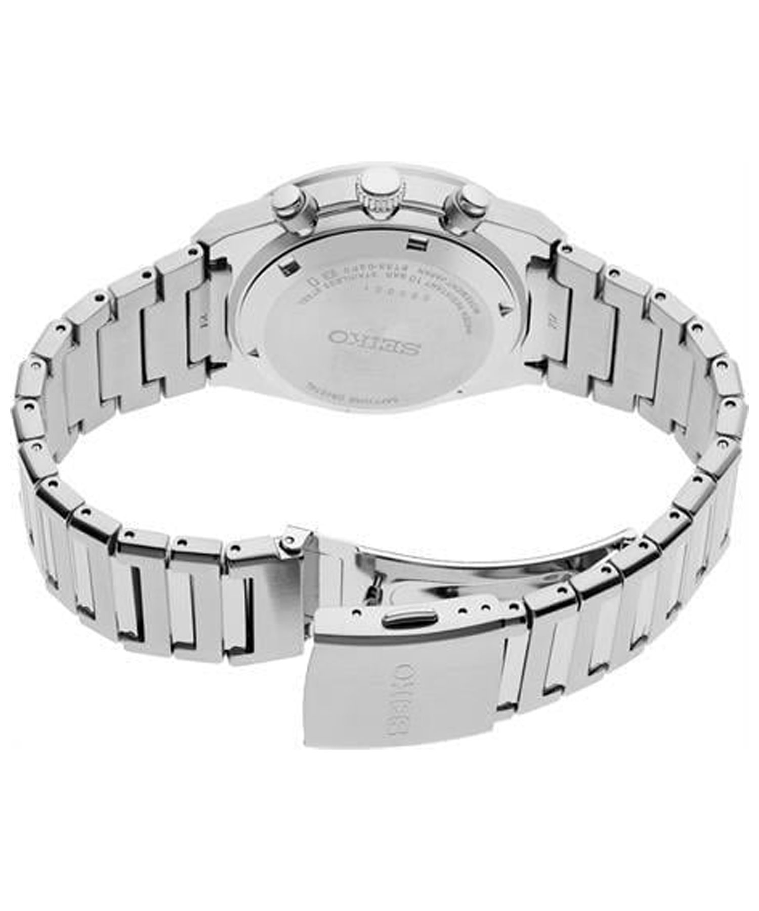ساعت Seiko SSB451P1 یکی از کرنوگرافهای مدرن و خوشساخت برند سِیکو است که با ظاهری کلاسیک–اسپرت طراحی شده. قاب و بند از جنس استیل ضدزنگ ساخته شدهاند که علاوه بر مقاومت بالا، ظاهری براق و شیک ایجاد میکنند. قطر قاب ۴۰ میلیمتر و ضخامت حدود ۱۱.۵ میلیمتر است؛ ابعادی متعادل که باعث میشود ساعت روی مچ دست نه خیلی بزرگ و نه کوچک جلوه کند. وزن ۱۵۲ گرمی آن حس کیفیت و استحکام را القا میکند و در عین حال استفاده طولانیمدت را خستهکننده نمیسازد.