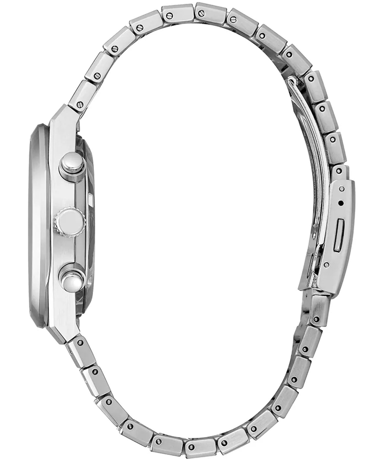 صفحه ساعت به رنگ سفید یا نقرهای طراحی شده و با سه زیرصفحه کرنوگراف تکمیل میشود. عقربهها و نشانگرها با پوشش LumiBrite مجهز شدهاند تا در نور کم نیز خوانایی بالایی داشته باشند. این ترکیب باعث شده ظاهر ساعت در عین سادگی، جذاب و کاربردی به نظر برسد.