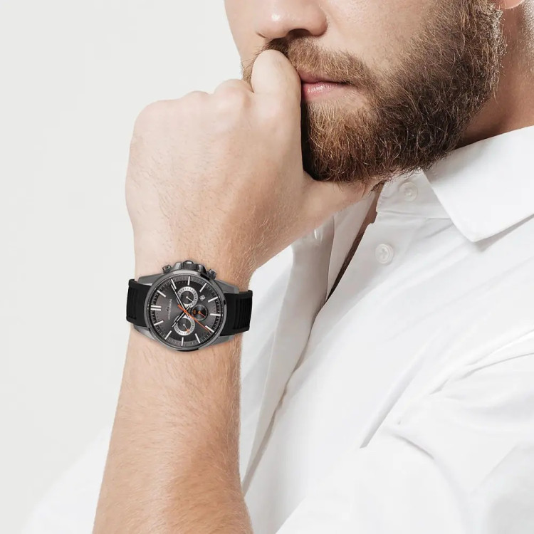 ساعت 1-1799M با طراحی مدرن و اسپرت، مناسب برای استفاده روزمره و فعالیتهای ورزشی است. بند سیلیکونی آن راحتی و سبکی را در هنگام استفاده فراهم میکند. عملکرد کرنوگراف با دقت بالا، امکان اندازهگیری زمانهای دقیق را فراهم میآورد. مقاومت در برابر آب تا عمق 100 متر، این ساعت را برای استفاده در شرایط مختلف مناسب میسازد.