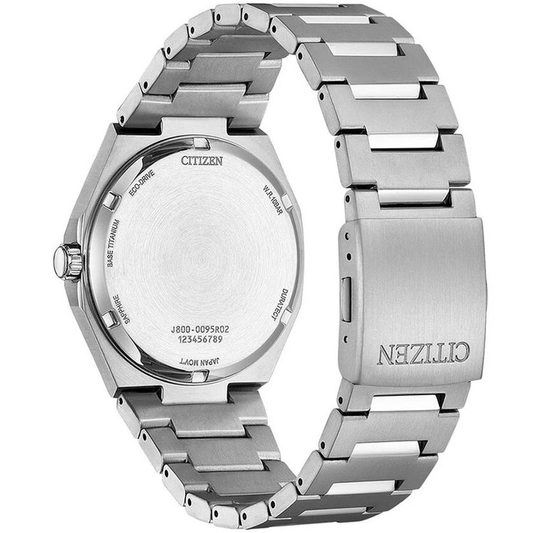 جنس قاب و بند از Super Titanium است؛ آلیاژی که بهواسطه فناوری سیتیزن بسیار سبکتر از فولاد و در عین حال مقاومتر در برابر خط و خش است. این ویژگی باعث میشود حتی با استفاده روزمره، درخشندگی و ظاهر ساعت مدت زیادی تازه بماند.