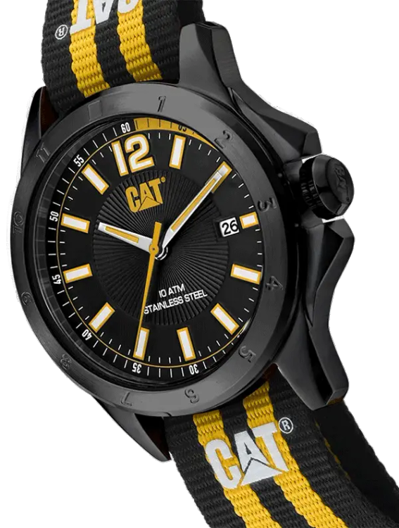 ساعت مچی مردانهٔ کترپیلار مدل YW.161.64.137 یک انتخاب اسپرتشکل و مقاوم برای استفاده روزمره با طراحی چشمگیر است. قاب از استیل ضدزنگ ساخته شده که ضمن حفظ دوام، ظاهر باکیفیتی به ساعت میبخشد و قطر حدود ۴۲٫۵ میلیمتر آن روی مچ جلوهای متناسب و مردانه ایجاد میکند. رنگبندی مشکی صفحه با جزئیات زرد، ترکیبی پویا و جوانپسند است و بند نایلونی یا ناتو با رنگ مشکی یا راهراه زرد–مشکی حس راحتی، سبکی و انطباق با مچ را فراهم میآورد. صفحه ساعت دارای نمایشگر تاریخ است و موتور کوارتز مییوتا 2315 دقت بالایی فراهم میکند و نگهداری آن بسیار ساده است. مقاومت آن تا عمق ۱۰۰ متر باعث میشود در شرایط مرطوب، باران یا فعالیتهای سبک آبی نیز قابل اعتماد باشد. طراحی کلی این ساعت برای کسانی است که ترجیح میدهند ساعتی جلبتوجهکننده، کاربردی، راحت و مقاوم داشته باشند، نه صرفاً یک ساعت رسمی یا زینتی.