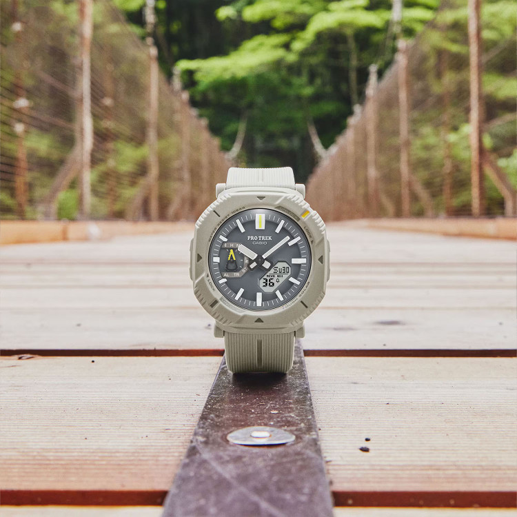 ساعت مچی مردانه کاسیو مدل PRO TREK PRJ-B001-7 یک انتخاب مدرن، سبک و کاربردی برای کسانی است که هم به ظاهر شیک و شهری اهمیت میدهند و هم به دنبال امکانات مناسب برای فعالیتهای روزمره و سفرهای سبک هستند. این مدل در دسته ساعتهای طبیعتگردی و اسپرت قرار میگیرد اما برخلاف بسیاری از ساعتهای Outdoor که ظاهری سنگین و زمخت دارند، طراحی آن بسیار مینیمال، خوشفرم و با رنگ روشن و جذاب ارائه شده تا روی مچ سبک، آرام و متفاوت دیده شود. استفاده از رزین مقاوم و سبک در بدنه و بند باعث شده وزن ساعت بسیار پایین باشد و هنگام استفاده طولانیمدت هیچ فشار و خستگی ایجاد نکند و این موضوع یکی از مهمترین مزیتهای آن نسبت به ساعتهای حرفهای سنگین محسوب میشود. این مدل مانند سایر اعضای سری PRO TREK از سیستم شارژ خورشیدی بهره میبرد و همین ویژگی باعث میشود ساعت همیشه آماده باشد و بدون نگرانی از تعویض باتری، تنها با نور محیط شارژ شود. وجود ارتباط بلوتوث با گوشی موبایل، امکان تنظیم دقیق زمان، هماهنگسازی خودکار، ثبت زمان و موقعیت و مدیریت سادهتر قابلیتهای ساعت را فراهم میکند و این باعث میشود که این مدل هم به عنوان یک ساعت روزمره هوشمند قابل استفاده باشد و هم در سفر و طبیعتگردی نقش یک ابزار قابل اعتماد را ایفا کند. مقاومت در برابر آب تا عمق صد متر خیال کاربر را در برخورد با رطوبت، باران و فعالیتهای آبی راحت میکند و مقاومت در برابر دمای پایین نیز نشان میدهد که این ساعت تنها برای ظاهر اسپرت ساخته نشده بلکه واقعاً برای محیطهای بیرونی طراحی شده است. صفحه ساعت خوانایی خوبی دارد، عقربهها و نشانگرها با پوشش شبتاب و نور پسزمینه روشن میشوند و در تاریکی و فضای کمنور نیز نمایش واضحی ارائه میدهند. طراحی قاب این مدل با حلقه چرخان اطراف نمایشگر نه فقط ظاهری جذاب ایجاد کرده بلکه در هنگام استفاده باعث محافظت بهتر از دکمهها و راحتتر شدن کنترل ساعت میشود. در مجموع این مدل ترکیبی جذاب از تکنولوژی، وزن کم، زیبایی و قابلیت استفاده روزمره است و برای افرادی که دوست دارند ساعتی داشته باشند که هم در شهر و هم در سفر همراه خوبی باشد انتخاب مناسبی است. ساعت PRO TREK PRJ-B001-7 ثابت کرده که لازم نیست برای داشتن یک ساعت Outdoor حتماً ظاهری خشن و سنگین انتخاب کنید، گاهی یک طراحی ساده و مدرن با امکانات دقیق و حرفهای میتواند تجربهای راحتتر، جذابتر و بهصرفهتر ارائه دهد و این همان چیزی است که این مدل را به یک گزینه ارزشمند تبدیل میکند.