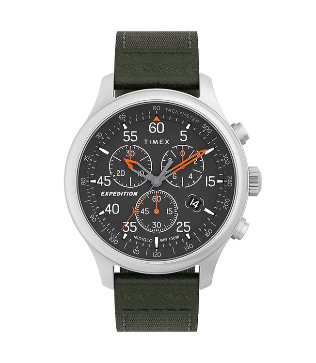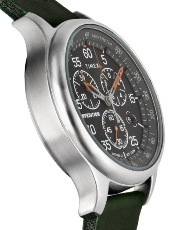 کرونوگراف سهگانه (ثانیهشمار، دقیقهشمار و ساعتشمار) نمایش تاریخ (در موقعیت ساعت 4) نور پسزمینه اختصاصی TIMEX (تکنولوژی INDIGLO)