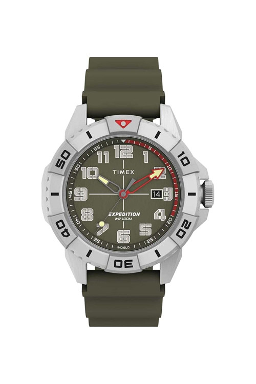 ساعت مچی زنانه تایمکس مدل TW2V40700 نمونهای متفاوت از مجموعه اکسپدیشن است که بهجای ظاهر کاملاً ظریف زنانه، رویکردی ماجراجویانه و مقاوم دارد و همین موضوع باعث شده انتخابی عالی برای افرادی باشد که علاوه بر ظاهر شیک، به عملکرد outdoor نیز نیاز دارند. طراحی این مدل با قاب نقرهای مات و صفحه سبز تاکتیکال، ترکیبی از زیبایی و کارکرد را ارائه میدهد؛ ساعتی که هم در استفاده روزمره جلوه دارد و هم در فضای طبیعت و فعالیتهای بیرونی کاملاً کاربردی است. خوانایی بالا یکی از نقاط قوت اصلی آن است، زیرا اعداد عربی درشت و عقربههای پوشیده از مواد شبنما، امکان دیدن زمان را در هر شرایط نوری فراهم میکنند.